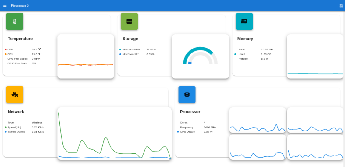 Pironman 5 Dashboard