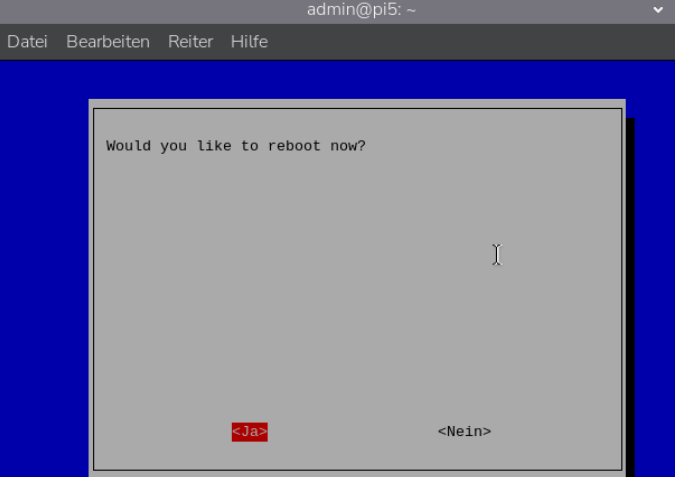 Im letzten Schritt klicken wir auf Ja, um den Pi zu rebooten.